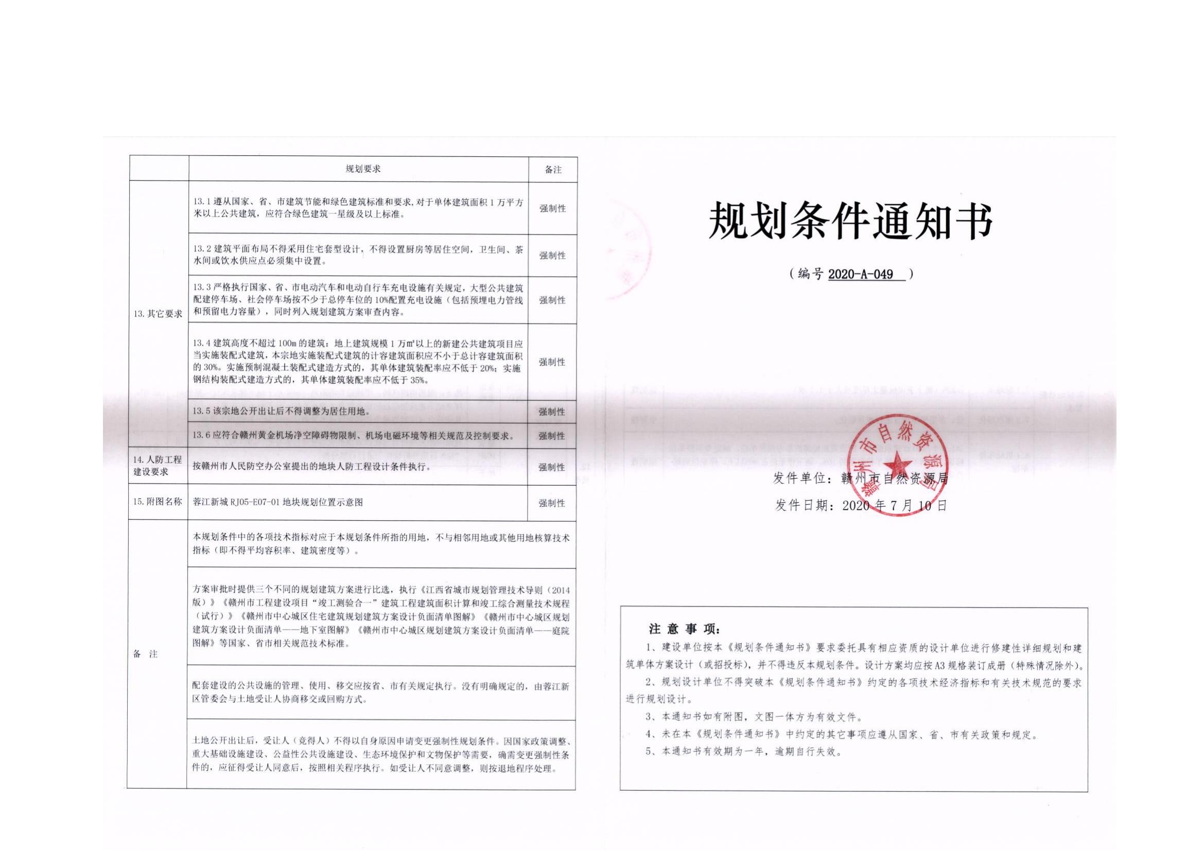 贛州蓉江新區(qū)RJ05-E07-01地塊位于創(chuàng)業(yè)路西側(cè),文軒路南側(cè)(蓉江新區(qū)管委會(huì)北側(cè)空地),項(xiàng)目用地面積33001.5㎡(約49.5畝),用地性質(zhì)為商服用地(商務(wù)金融、旅館、餐飲、其他商服用地),容積率≤2.0,建筑高度≤45米,建筑密度≤40%,綠地率≥25%,總計(jì)容面積66003㎡(公寓占計(jì)容面積不得大于20%,單套面積不大于60㎡),無自持比例及自持年限要求。地塊于2020年12月15日由贛州旅游投資集團(tuán)有限公司競(jìng)得,成交總價(jià)13004萬元,地塊已辦理不動(dòng)產(chǎn)權(quán)證書(項(xiàng)目公司為贛州華燦置業(yè)有限公司)。