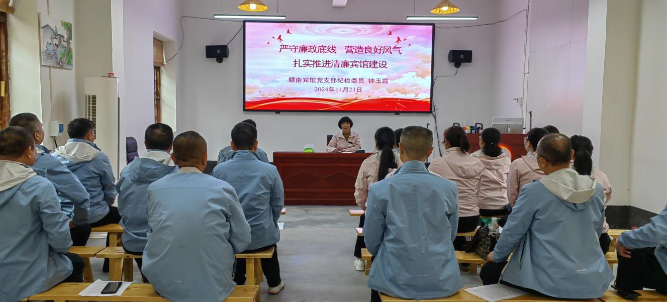 參觀結(jié)束后,贛南賓館黨支部還組織開展了上黨課活動(dòng),支部委員鐘玉霞以《嚴(yán)守廉政底線、營(yíng)造良好風(fēng)氣,扎實(shí)推進(jìn)清廉賓館建設(shè)》為題,給黨員們上了一堂生動(dòng)的廉政教育黨課,進(jìn)一步筑牢黨員思想防線。隨后支部還組織開展了11月份學(xué)習(xí)日活動(dòng),并重溫入黨誓詞。