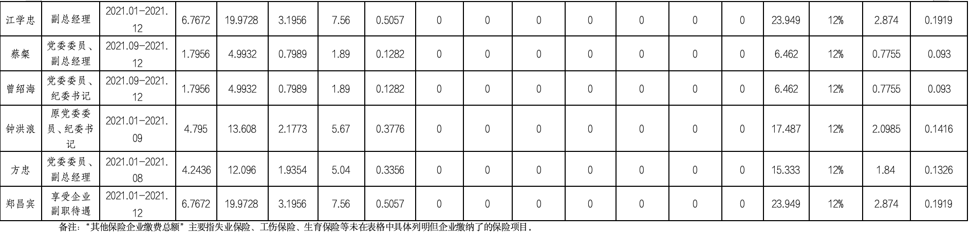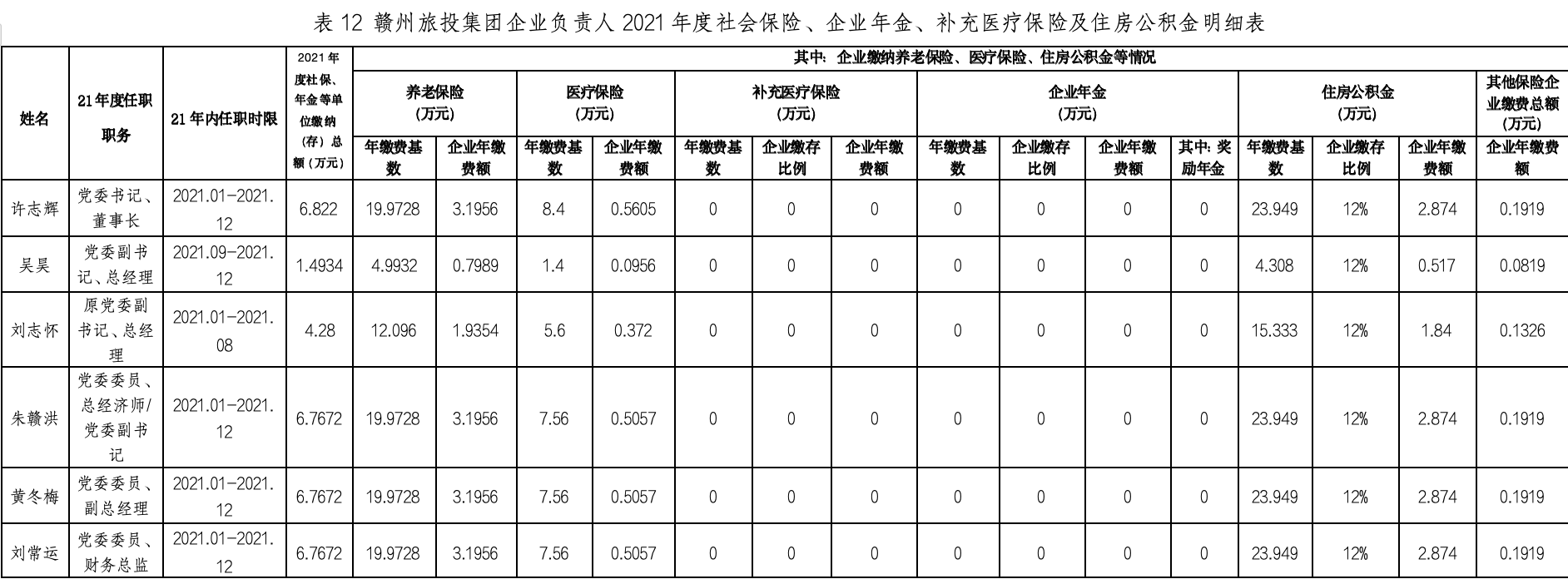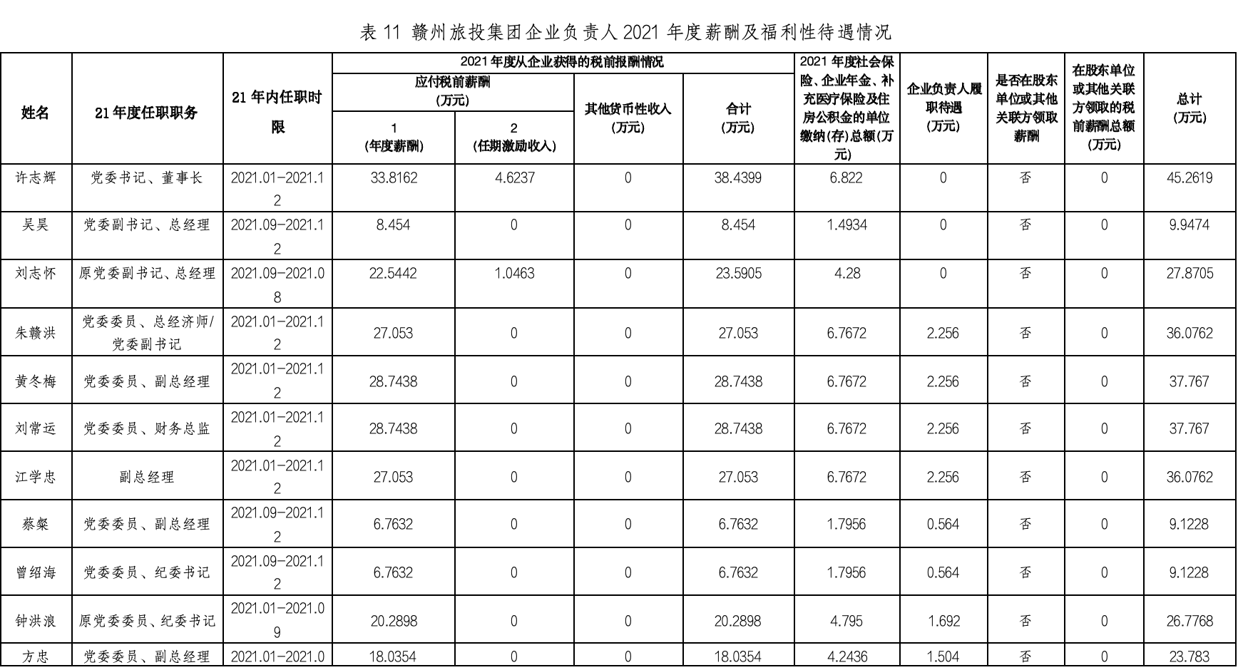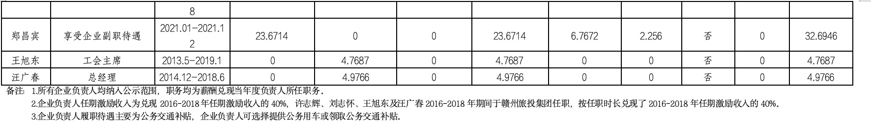 根據(jù)《市屬企業(yè)負(fù)責(zé)人薪酬信息披露辦法》,現(xiàn)將贛州市國(guó)資委出資監(jiān)管企業(yè)負(fù)責(zé)人2021年度薪酬及福利性待遇情況披露如下: